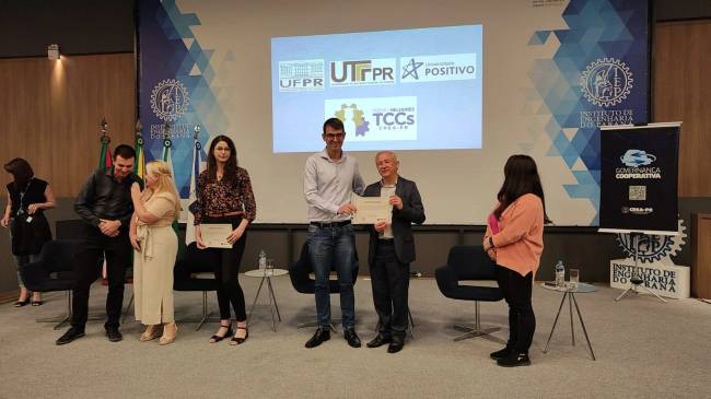 Trajeto Livre recebendo o prêmio MELHOR TCC EM ENGENHARIA ELÉTRICA pelo CREA-PR